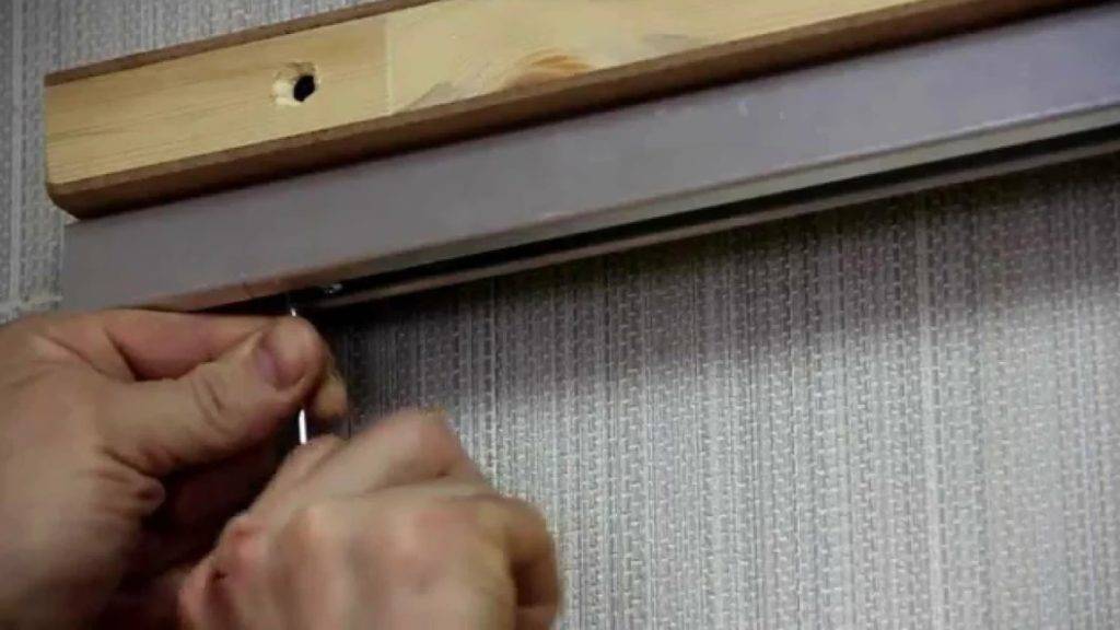 Ролики обязательно центруются, т.е. они должны быть расположены на одинаковых расстояниях. Для этого с помощью пластины на торцевой части полотна отмечаются места фиксации роликов и делаются отверстия. При этом берется сверло диаметром меньшим на 1 мм от диаметра саморезов.