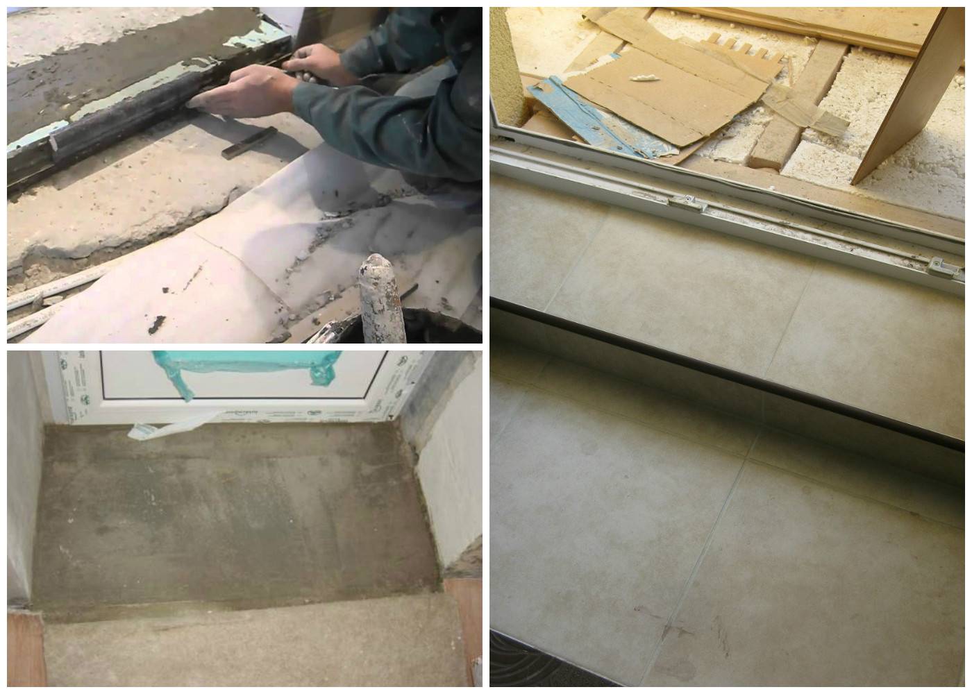 При сооружении порога перед дверью балкона используют те же материалы, что и для входной двери. Работа проводится тем же способом.