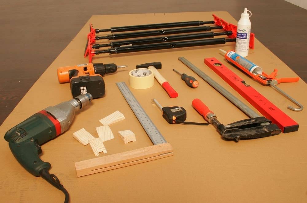 - молоток, дрель, шуруповерт со сверлами;