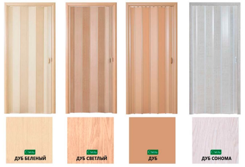 Ширина каждого сегмента – от 100 до 250 мм, при складывании, каждая подвижная часть изламывается в противоположные стороны, и, в открытом положении, дверь образует ровную стопку у простенка.