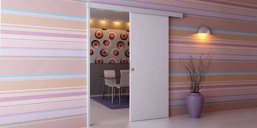 Дверное полотно отодвигается полностью и занимает место рядом с простенком, что требует наличия свободного пространства перед ним.