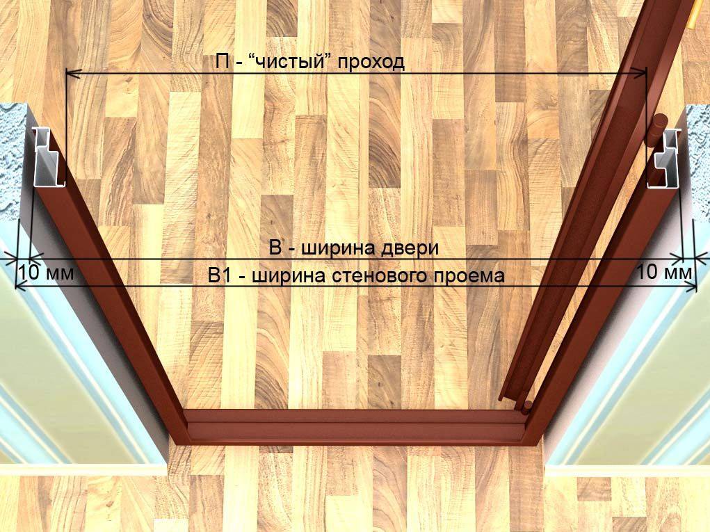 Данные размеры написаны в документе к двери. Учитывайте лишь ширину доборов. В итоге, Вы разбираетесь, что делать с проемом: расширить или же наоборот, сузить, при помощи строительной пены, доборов и брусьев.