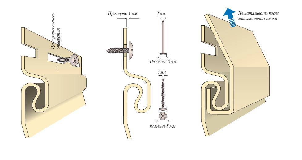 Не стоит слишком жестко крепить панели между собой (если это не металлический сайдинг). В случае применения виниловых панелей стоит оставлять между панелью и шляпкой зазор в полтора миллиметра, так как при изменении температурных показателей окружающей среды объем материала изменяется, и при жестком креплении может вздуться.