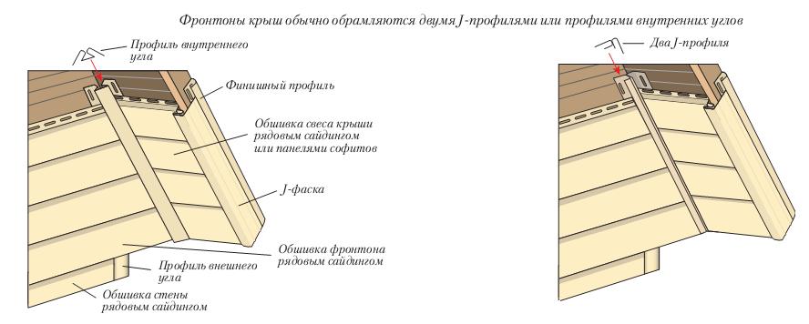 - J-профиль (J-trim) – универсальная планка, используется для закрытия торцов здания, крепления софитов, окантовки вертикальных срезов. Также с помощью нескольких планок можно воспроизвести наружный и внутренний углы.