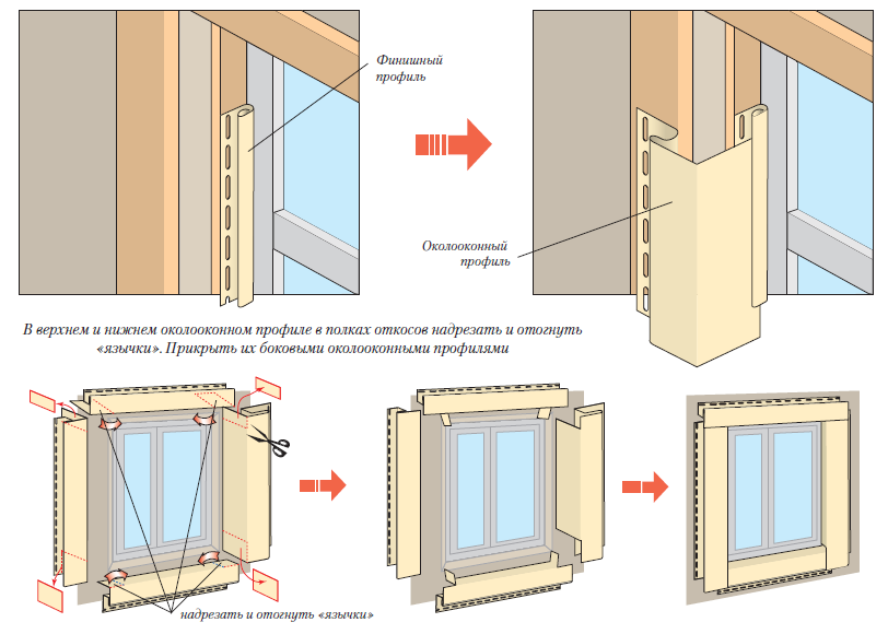 Закрепляя сайдинг своими руками с утеплением, можно столкнуться с трудностями именно на этом этапе работ. Крепление в этом случае зависит от того, как проем расположен относительно плоскости наружной стены: заподлицо или утоплено.