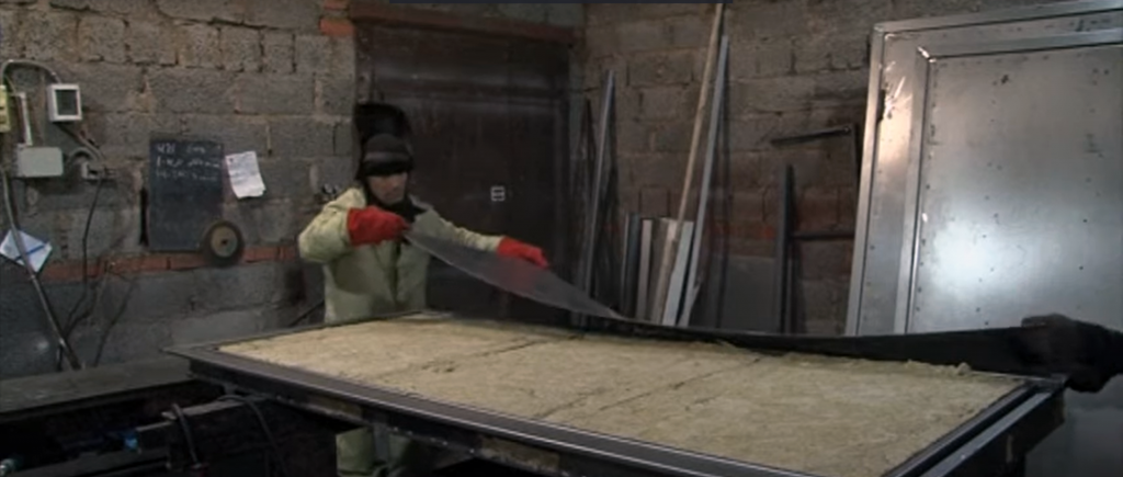 Лучшей изоляцией для удовлетворения всех предъявляемых к полотну требований является минеральная вата. Данный материал обладает высокой пористостью и низкой объёмной массой, что делает его эффективным утеплителем, а также помогает поглощать большинство шумовых воздействий. Кроме того, данный изолятор не горит и не плавится при воздействии открытого огня, являясь противопожарной преградой.