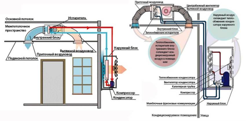 - Поток воздуха обдувает кондиционер. С этой целью в системе устанавливается вентилятор.