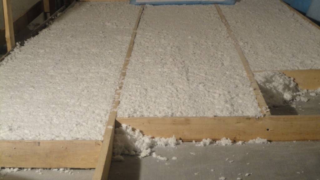 На рынке строительных материалов присутствует большое количество утеплителей и с помощью большинства можно проводить утепление пола, проводя работы со стороны подвала. Наиболее универсальным из них считается минеральная вата, которую можно класть под стяжку бетона, либо же размещать под деревянным перекрытием. При наличии лаг под перекрытием допустимо применять насыпные варианты, причем лаги могут находиться как над бетоном, так и присоединяться к перекрытию. Хорошим вариантом будет пенный утеплитель, который заполнит пространство между балками.
