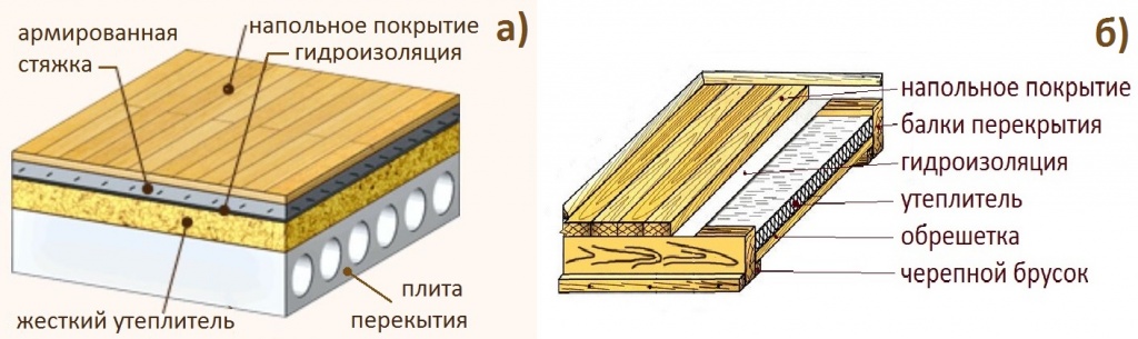 а) – утепление по всей плоскости железобетонных плит перекрытий;