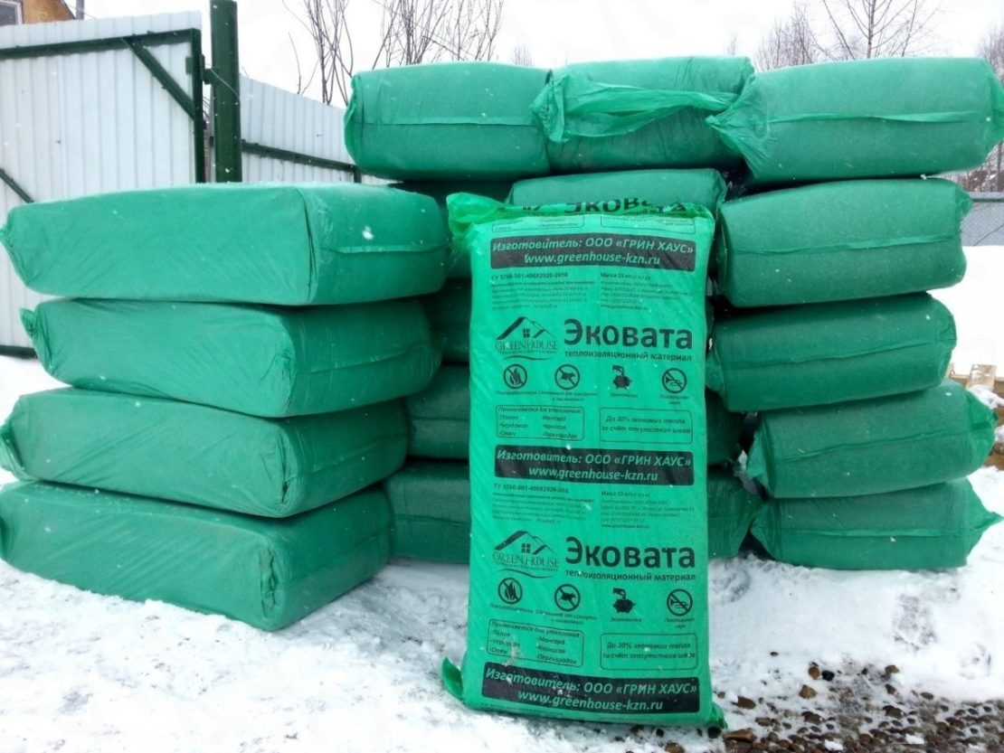 - Эковата – аналог минеральной ваты, изготовленный из целлюлозы. Обладает повышенной упругостью, в ней не живут мыши. Но имеет немного худшие противопожарные свойства, она не горит, но может тлеть.