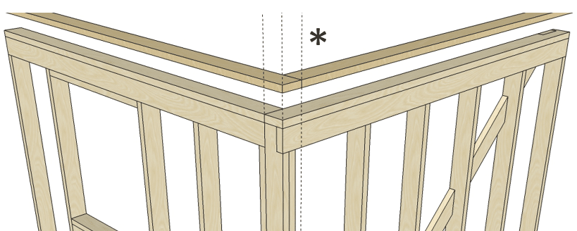 3. Обязательный элемент в конструкции, это перекрывание обвязки и подкладочной доски. Данный узел дополнительно связывает элементы для большей надежности и улучшения теплоизоляции.