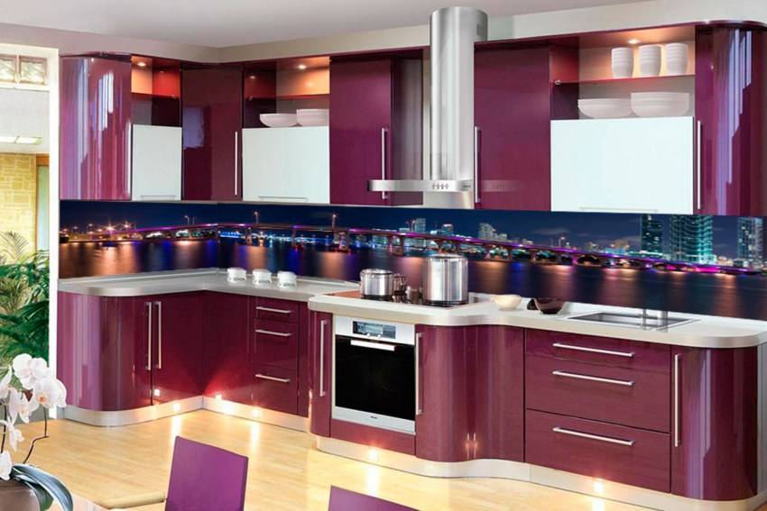 - Свет, отражающийся от стекла, делает малогабаритные кухни визуально большими и просторными. Встроенная подсветка поможет сделать помещение уютным и стильным.