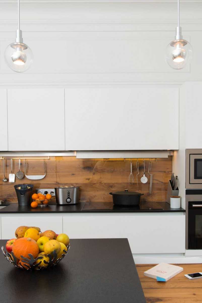- К необычным для фартука на кухне относится отделка из массива дерева. Этот вариант плохо сочетается с повышенной влажностью, паром и горячими брызгами. Изделия из массива, конечно, защищаются специальными лаками, но все же это решение для индукционной или электрической плиты.