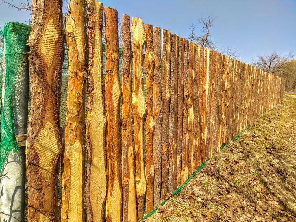 Даже самый качественный отборный материал нельзя пускать на строительство забора без предварительной подготовки. Его необходимо ошкурить и пропитать средством от гниения и насекомых.