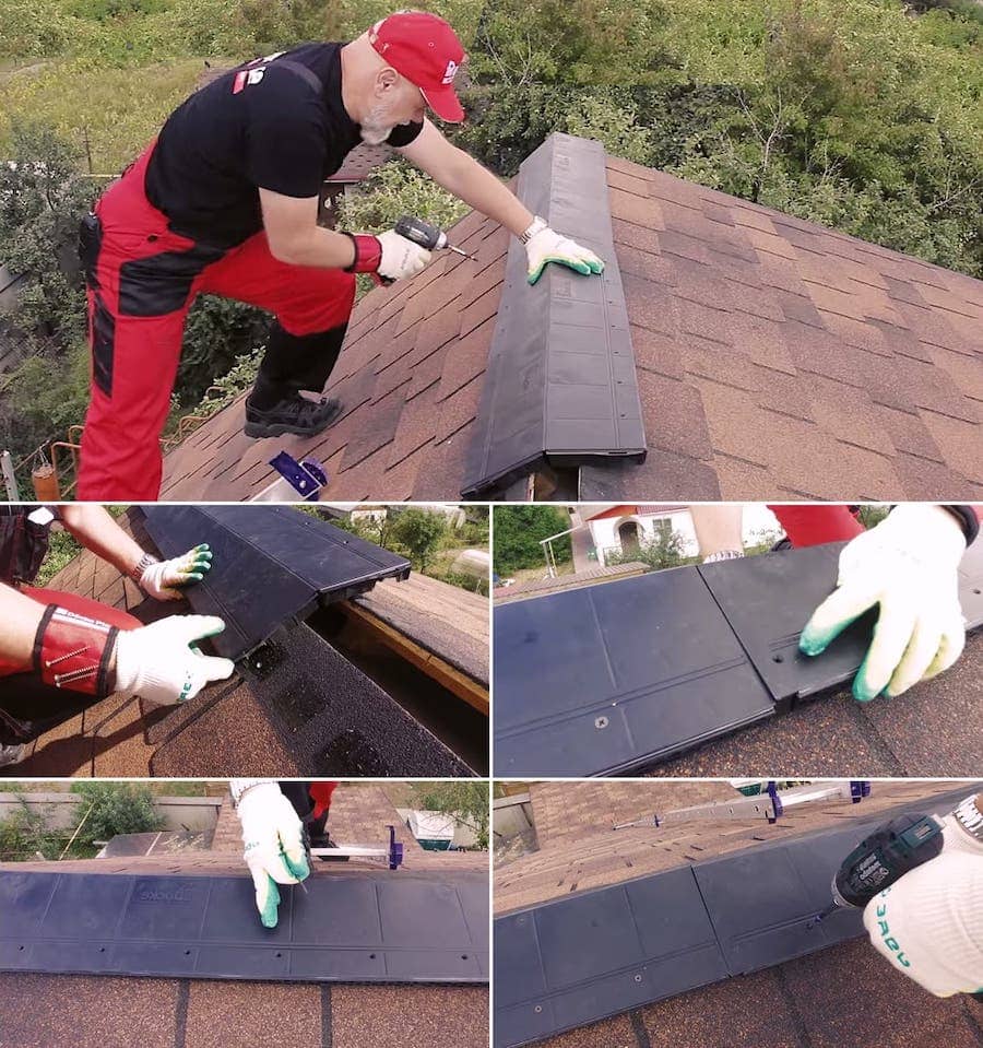 Установка конькового вентиляционного отверстия на черепичной кровле