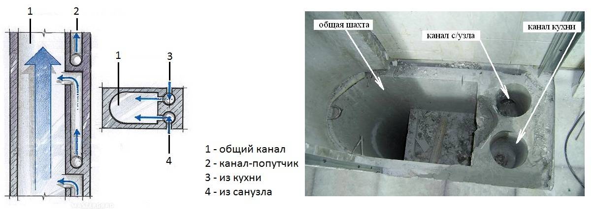 В этом случае вентиляционные шахты не соединяются между собой, улучшается , а в дом не поступает загрязнённый воздух из соседских квартир. Другая разновидность такой схемы вентиляции в хрущёвке – из каждой квартиры отдельные каналы ведут к крыше, где соединяются в единую трубу, которая выводит воздушные массы на улицу.