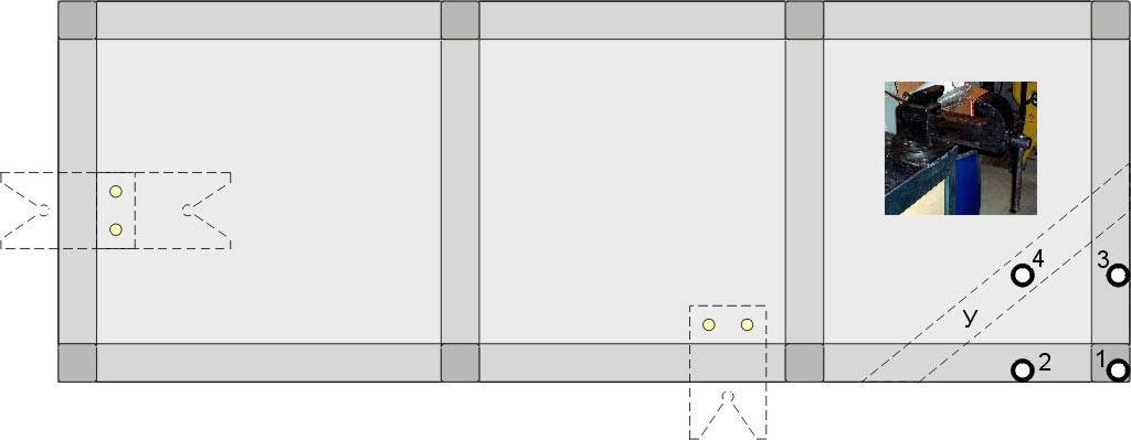 - Ставят тиски временно на 1 болт и по месту размечают отверстия под крепежные точки 2, 3 и 4;