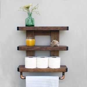 - Если стены сделаны из дерева, то фиксация полки проблем не вызовет. Единственной трудностью может быть поиск места, где можно выполнить отверстие. После полку надо поднести к размеченным точкам и закрутить саморезами. Чтобы зафиксировать изделие на деревянную поверхность не требуется покупать дополнительно инструмент, саморез можно вкрутить обычной отверткой.