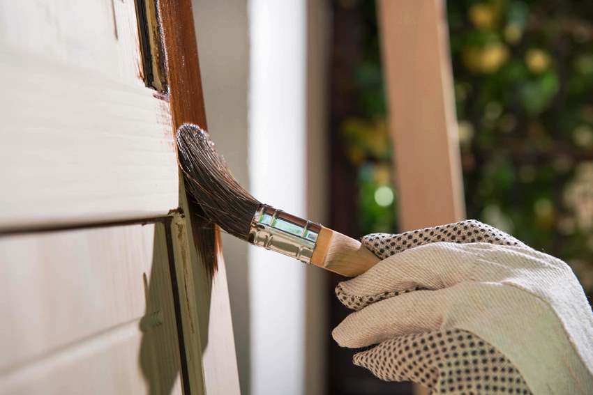 Выполнять защитное и декоративное покрытия следует в горизонтальном положении двери. Так можно избежать потеков. Если используется баллончик-распылитель, необходимо следить за интенсивностью струи и держать его на одном расстоянии в течение всего времени нанесения краски.