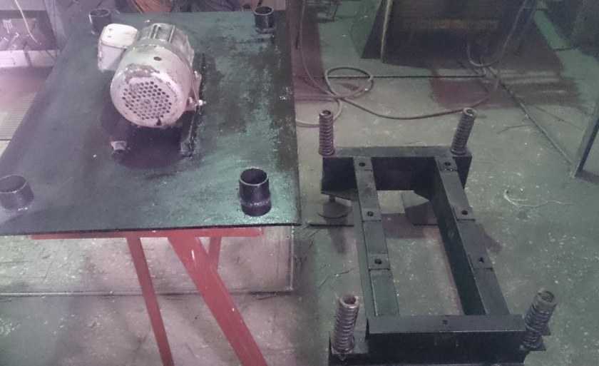 Вибрировать должен стол, а не мотор. Электродвигатель нужно намертво закрепить на подставке, иначе от ряски он быстро придёт в негодность, а эффективность вибростола снизится. Чтобы изделие служило дольше, а работа с ним была безопаснее, усильте конструкцию. Приварите по бокам крест-накрест швеллеры, убедитесь, что пружины установлены максимально жёстко.