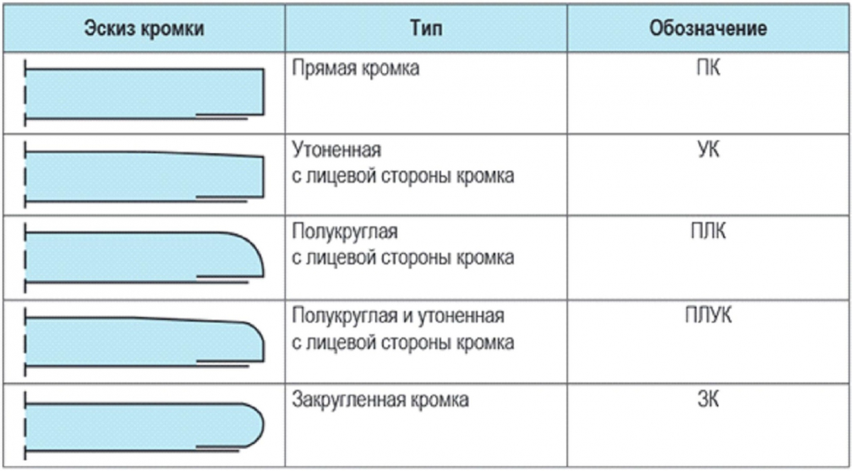 Наиболее популярны на отечественном рынке три разновидности формы кромки: