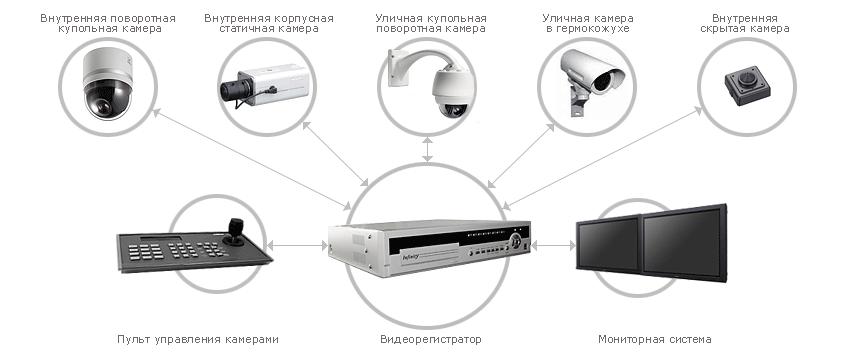 В составе любой системы видеонаблюдения с регистрацией и хранением видеоданных входят следующие элементы:
