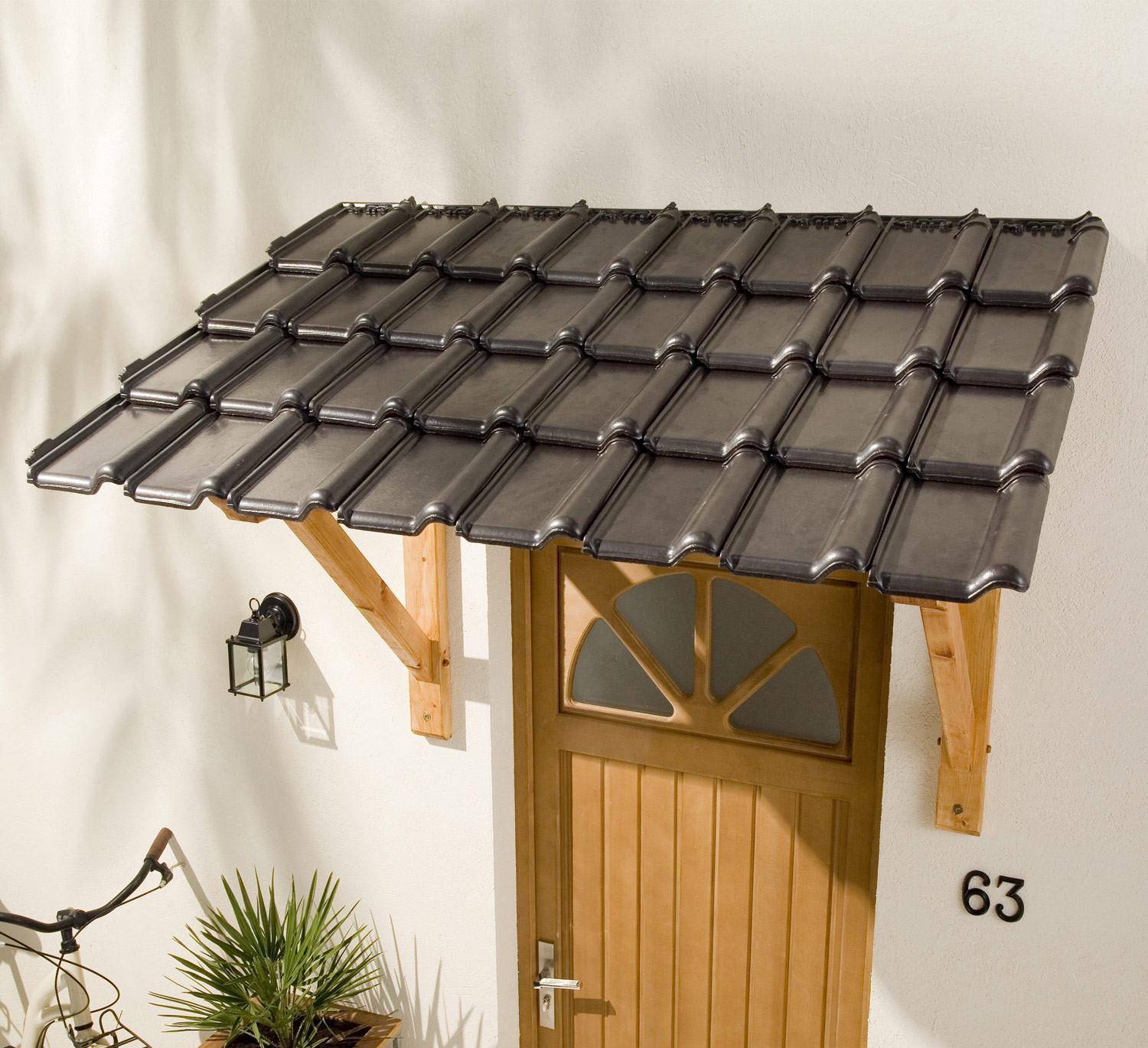 - Козырек располагают над входной дверью.