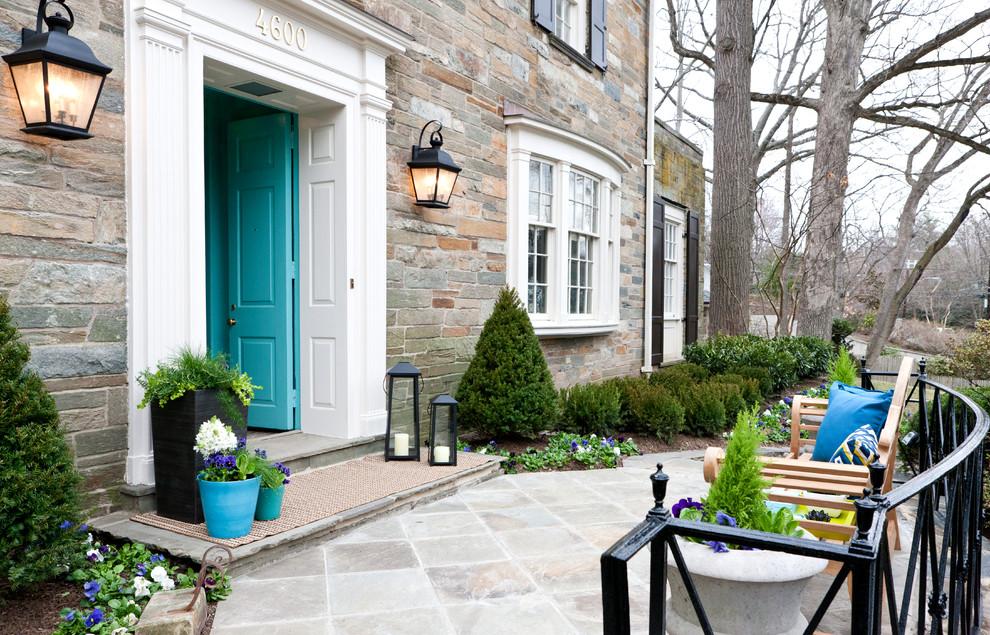 Более сложный способ – это оформление крыльца в отличном от дома стиле. Это допускается, но потребует от вас исключительного вкуса. Чтобы объединить дом и входную группу, необходимо будет продумать общие детали: это могут быть элементы одного и того же цвета или какие-то геометрические фигуры.