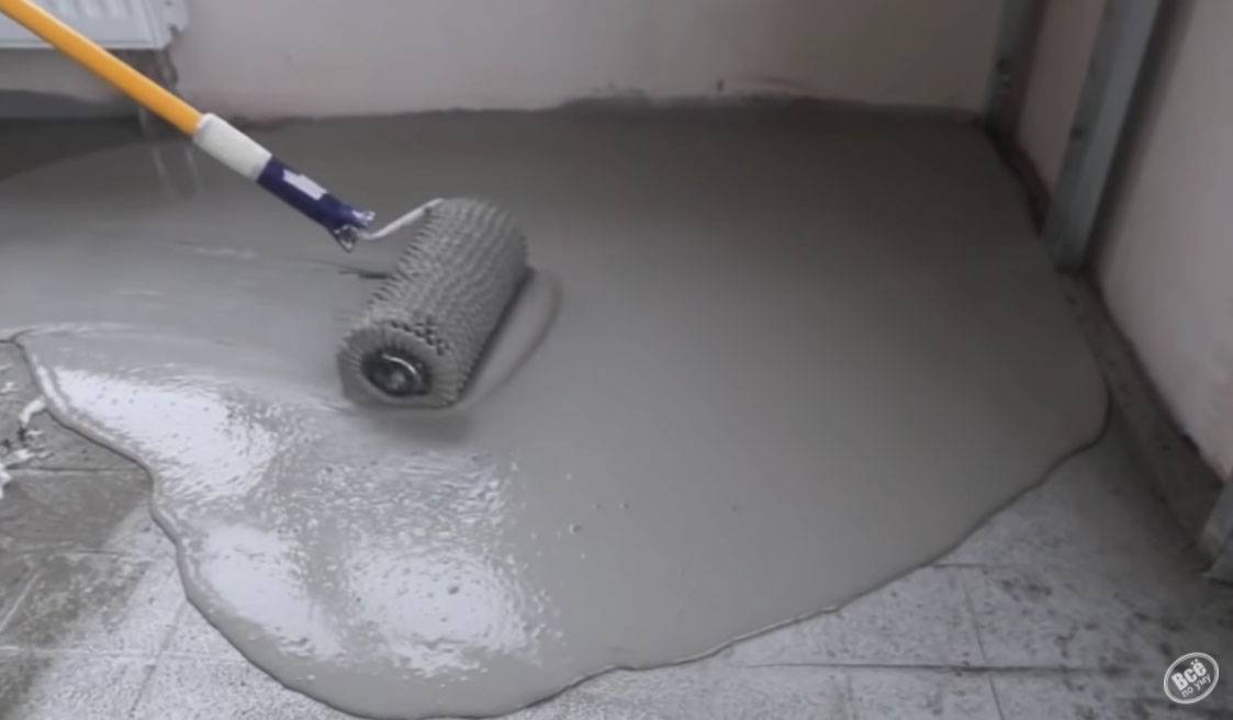 Для предотвращения протечки воды, которой смачивается ровнитель, необходимо нанести гидроизоляционный раствор;
