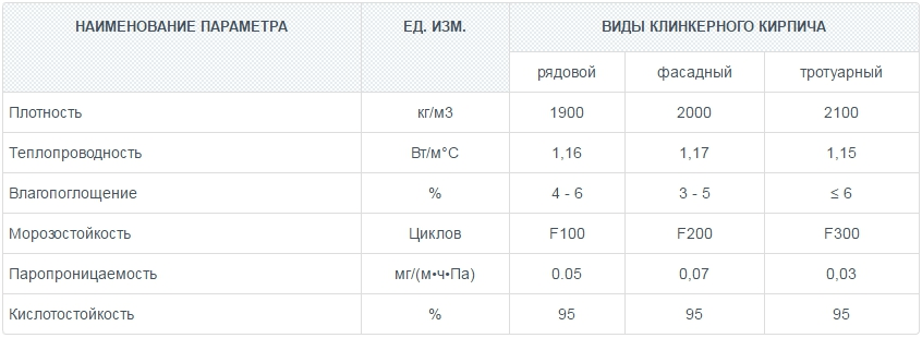 Среди недостатков клинкера – повышенная теплопроводность и высокая стоимость. Плотность клинкера 1900–2100 кг/м³, пористость до 5%, марка морозостойкости 50–100, коэффициент теплопроводности 1,16, марка прочности 400–1000, цвет – от желтого до тёмно-красного.