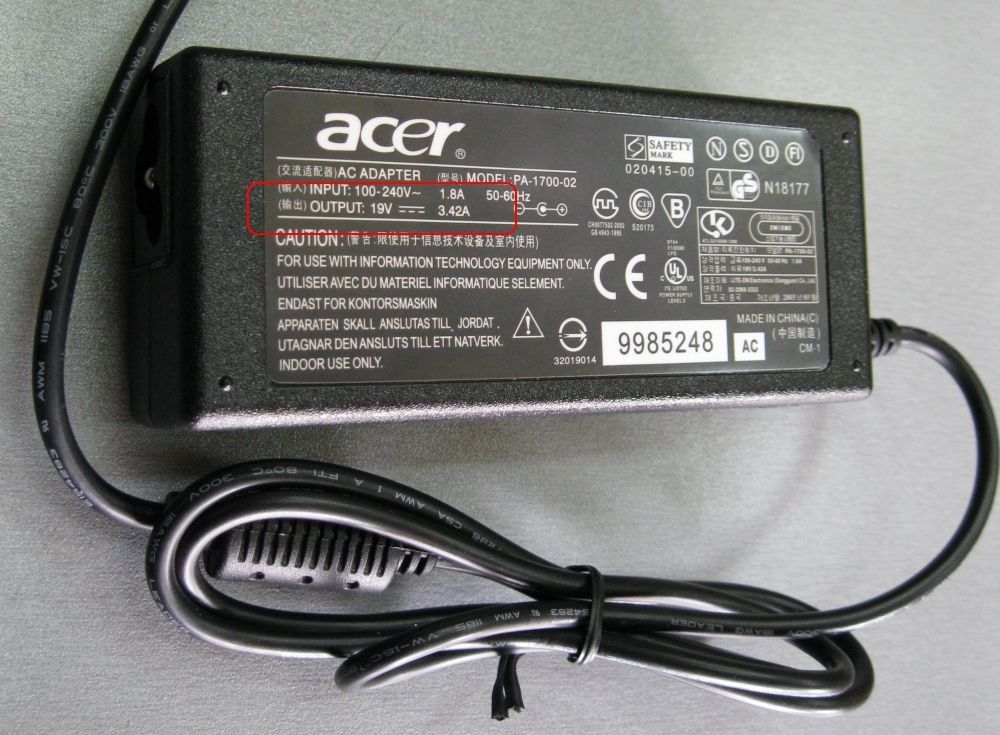 Этот метод потребует от вас минимум технических знаний. Если возникла потребность переделать шуруповёрт в сетевой, вам сможет помочь ненужная зарядка от ноутбука, так как она имеет схожие характеристики и без труда найдётся в любом доме. Сперва необходимо посмотреть, какое выходное напряжение у зарядки. Подойдут зарядные устройства на 12–19В.