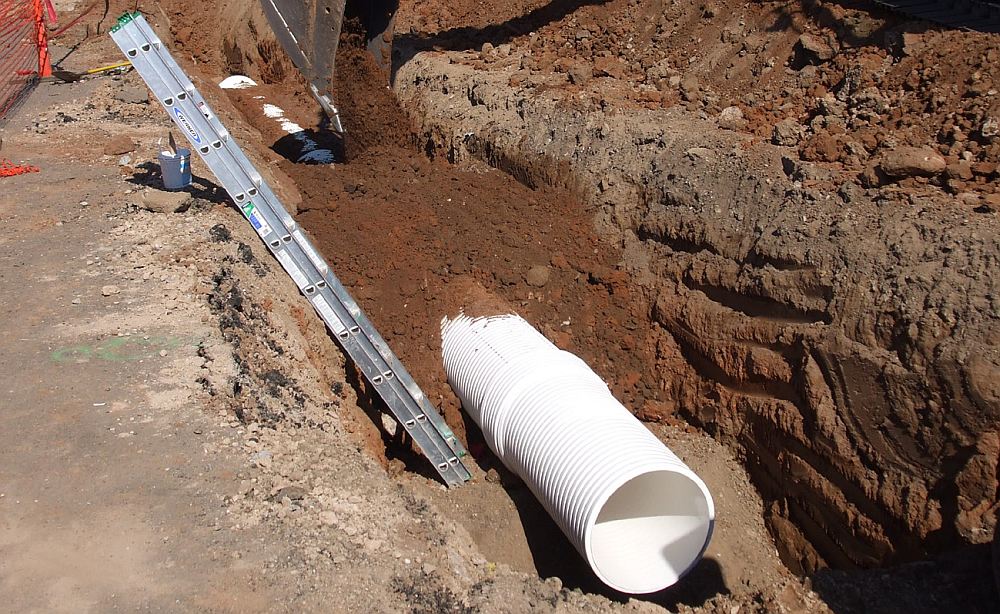 Подготавливая траншею для дальнейшей установки выпускного водоотвода, следят за тем, чтобы грунты был нетронутым. А для того чтобы окончательно предотвратить проседание почвы в будущем, к траншее с трубой подсыпают песок и тщательно ее утрамбовывают. Во всех местах соединений делают небольшой подкоп земли, чтобы все трубы лежали прямой линией без искривлений.