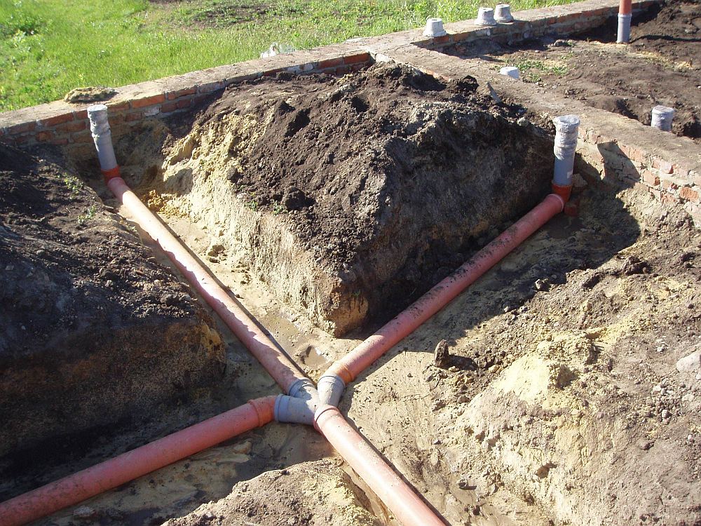 - С учетом проекта производятся земельные работы: копается траншея под трубопровод и яма под колодец или станцию;