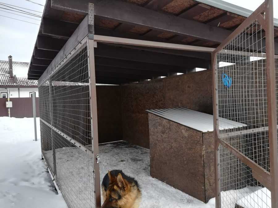 - Капитальные. Сооружение разделено на несколько зон. Имеет отдельное помещение, с четырех сторон огражденное стенами, в котором расположена будка, специальную область для выгула и кормежки, обнесенную решеткой. В холодное время года место для кормления переносится в защищенную часть.