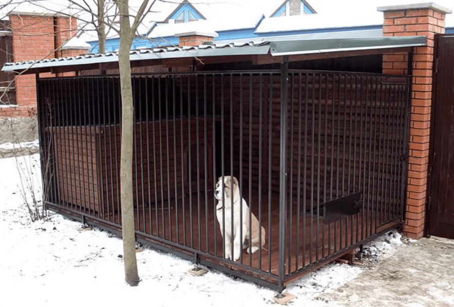 Чтобы укрыть питомца от дождя или снега обязательно делают навес или крышу, не рассчитывая только на будку. Если осадки довольно обильные и продолжительные, животное сможет находиться в укрытии, не ограниченном одним квадратным метром. Зимние вольеры должны быть капитальными, чтобы пес не замерз. Часто применяют разные системы подогрева.