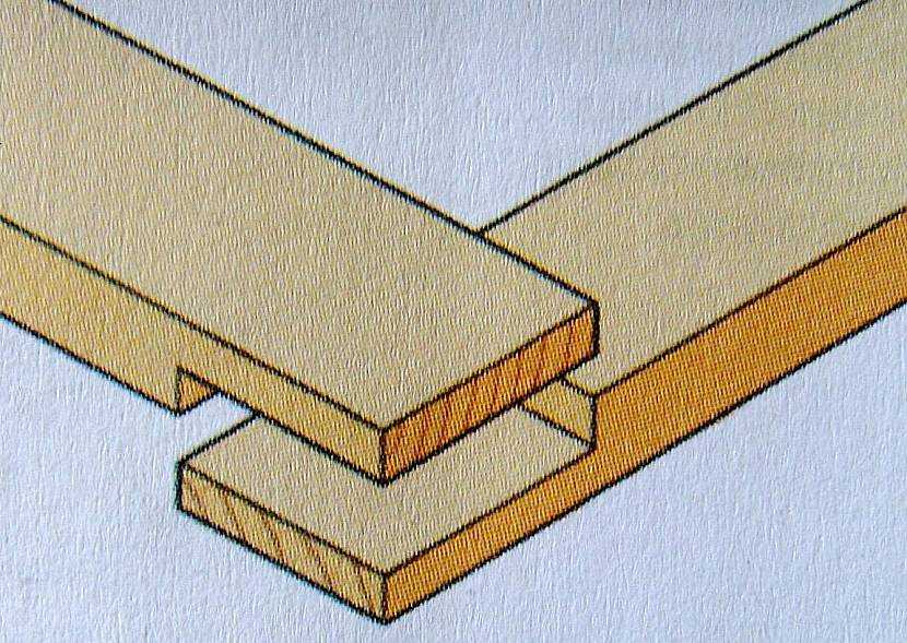 Здесь очень важно точно выдержать размеры запилов. Для увеличения прочности крепления можно использовать металлические уголки, которые устанавливаются по углам каркасной конструкции. Соединение в пол доски