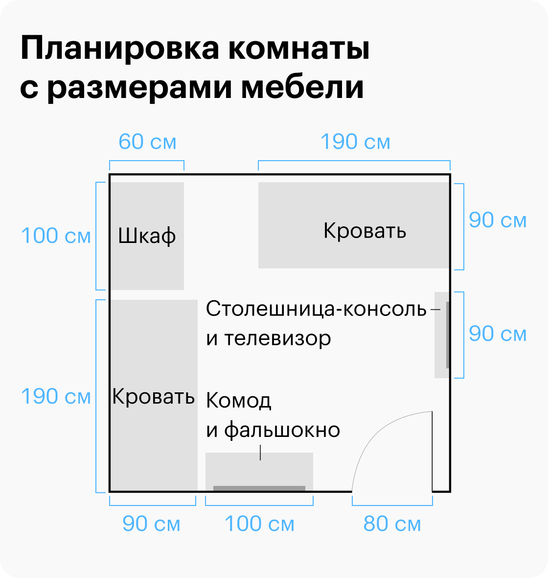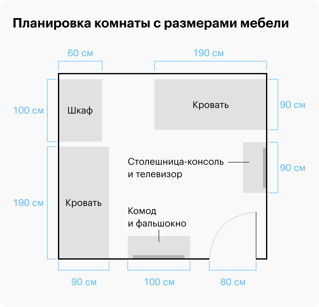 План комнаты с размерами мебели  План комнаты с размерами мебели