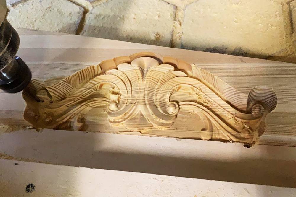 Считаю, что почти все можно сделать своими руками. Например, если перекрасить стандартную мебель, поменять фурнитуру, добавить вензеля, а изголовья украсить шариками, то можно стилизовать ее как угодно. Вензеля можно купить готовые или выпилить фрезером на станке с ЧПУ по 3D-модели.
