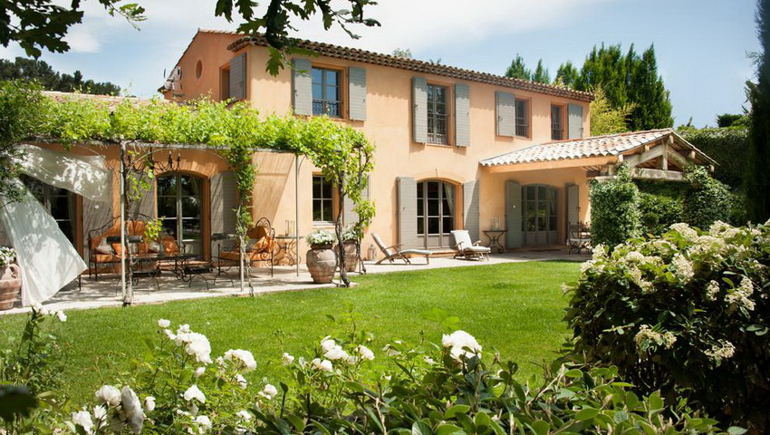 Прованский стиль очень требователен к внешнему облику дома. Отделка натуральными материалами «под старину» будет гармонично сочетаться с растениями, оплетающими стены и обрамляющими окна. Здесь нет четкого отделения дома от сада, и чем больше будет на участке растений – тем лучше. Дом находится в объятьях сада, когда растения оплетают сам дом, забор и арки. Цветы – не только на клумбах, а в доме, на террасе, под окнами и на подоконниках.