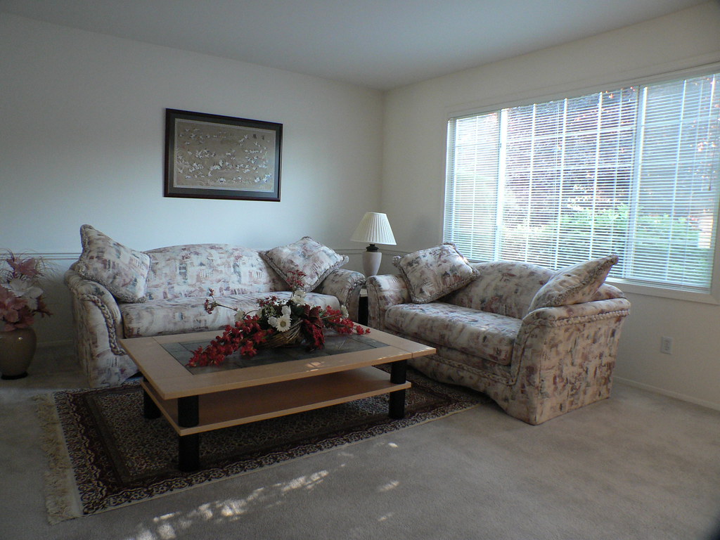 Ламинат используется для отделки городской квартиры. Готовый пол украсит небольшой однотонный ковер с легким цветочным узором или без него.