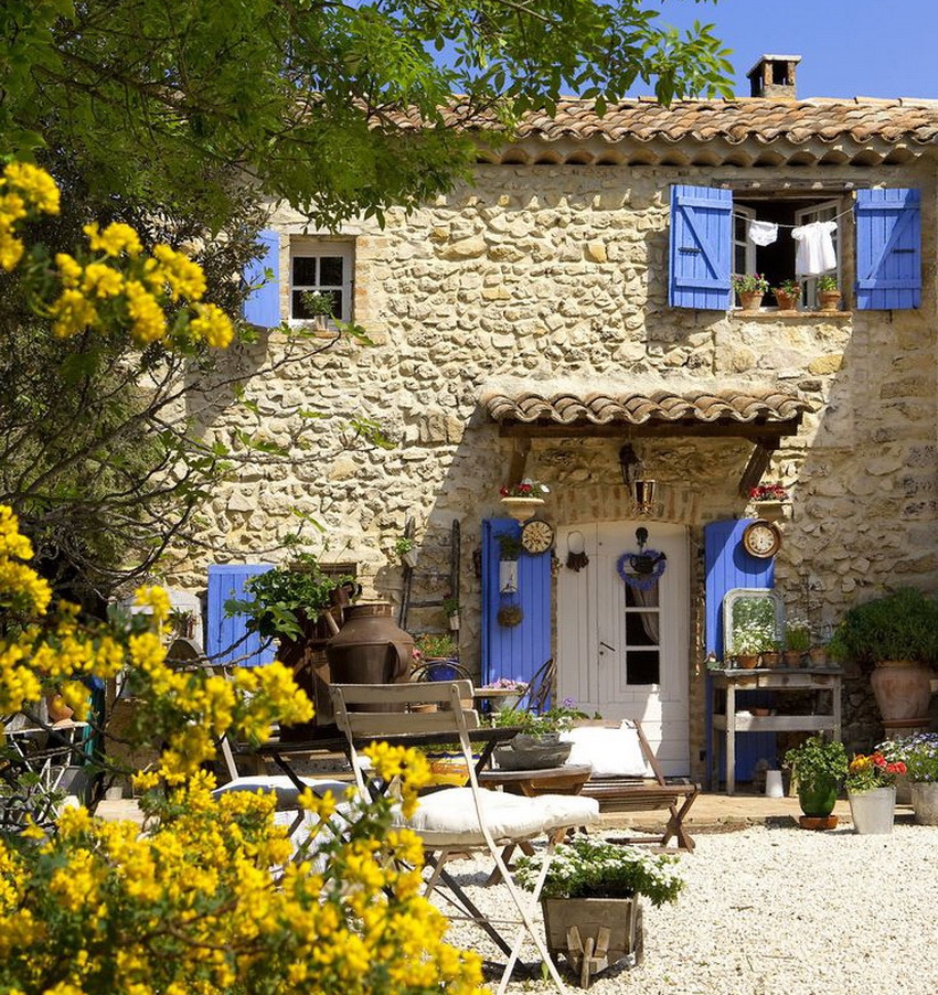 Двор домика в стиле прованс должен выглядеть естественно, с эффектом «запущенности»