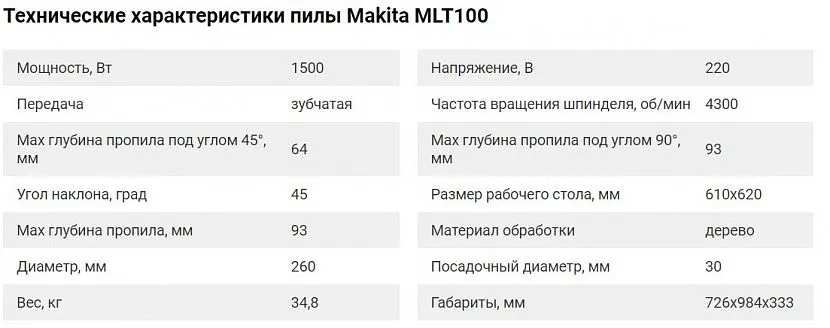 Технические характеристики модели Makita MLT100 Источник vseinstrumenti.ru