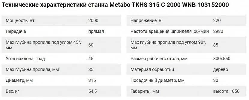 Циркулярный станок Metabo TKHS 315 M 2000 DNB Источник vseinstrumenti.ru Первый представитель обширного семейства циркуляционных станков от компании Metabo. Предназначен для профессионального использования, работает от однофазной сети 220 V. Идеально подходит для работ с докой, брусом, панелями.