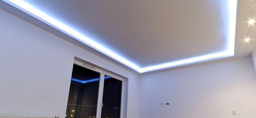 При помощи светодиодной ленты, расположенной по периметру потолочной конструкции, создается ощущение, как будто она свободно парит в воздухе.