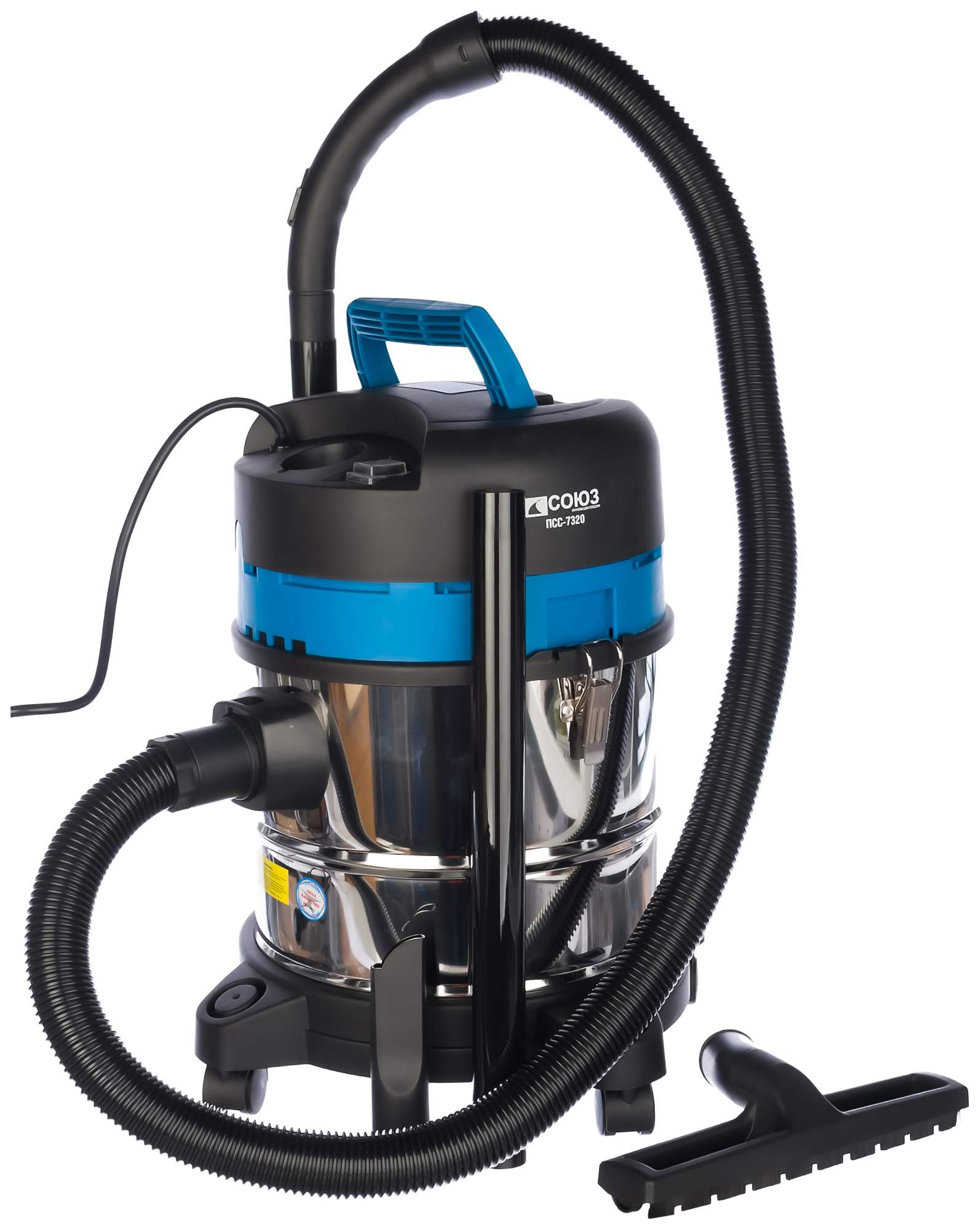 Российский строительный пылесос Союз ПСС-7320 располагается на 7-м месте рейтинга. Он имеет мощность 1,6 кВт. Фильтр имеет каркасную конструкцию, а место его посадки сделано так, что можно устанавливать фильтры иных моделей. Объем мусоросборника – 20 л. Для сборки мусора используются мешки или контейнер. Пылесос можно использовать для сбора жидкостей. Масса аппарата — 5,3 кг.