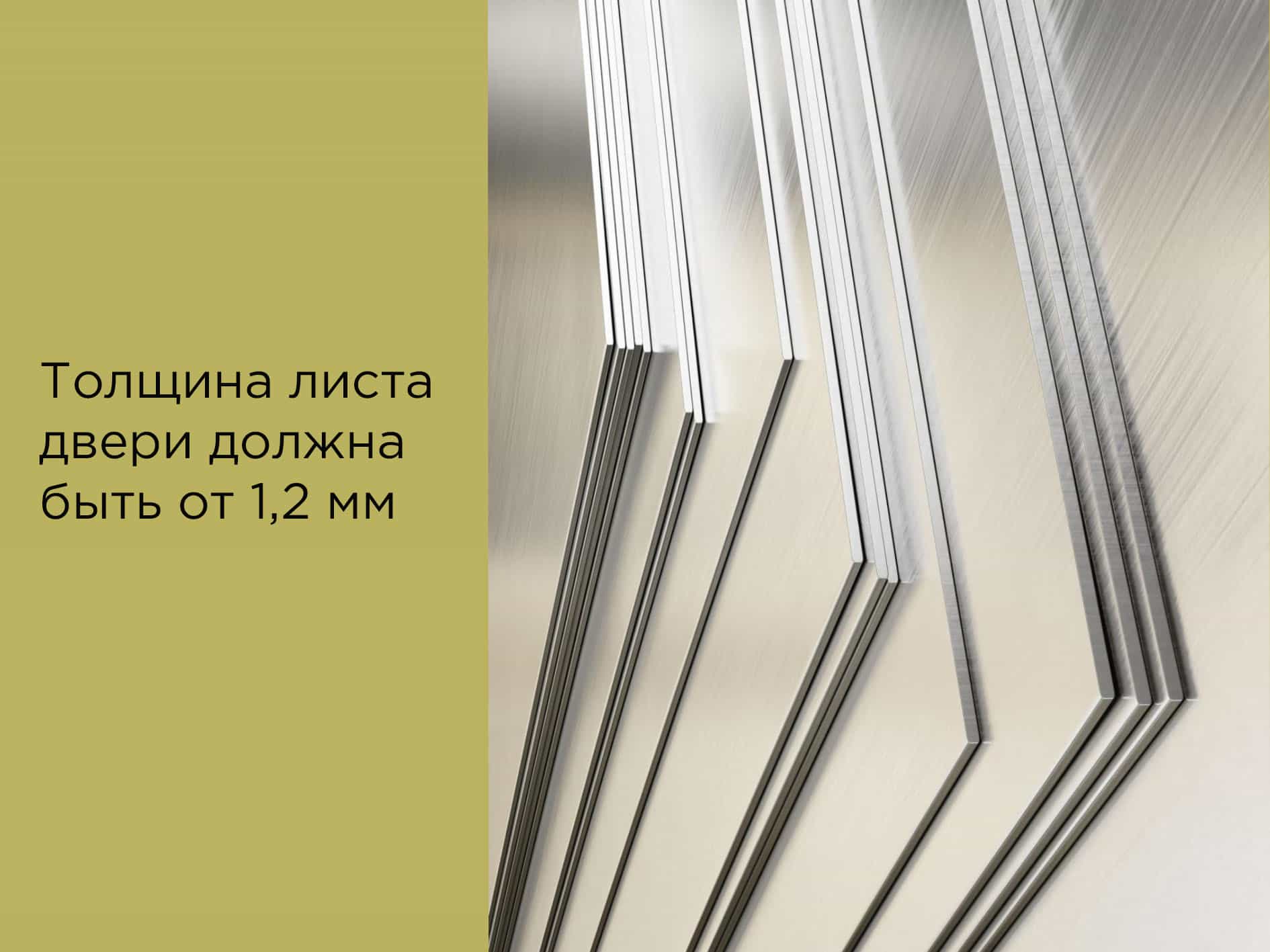 Важно заметить, что определенные компании ставят стальной лист лишь снаружи, а изнутри используют МДФ