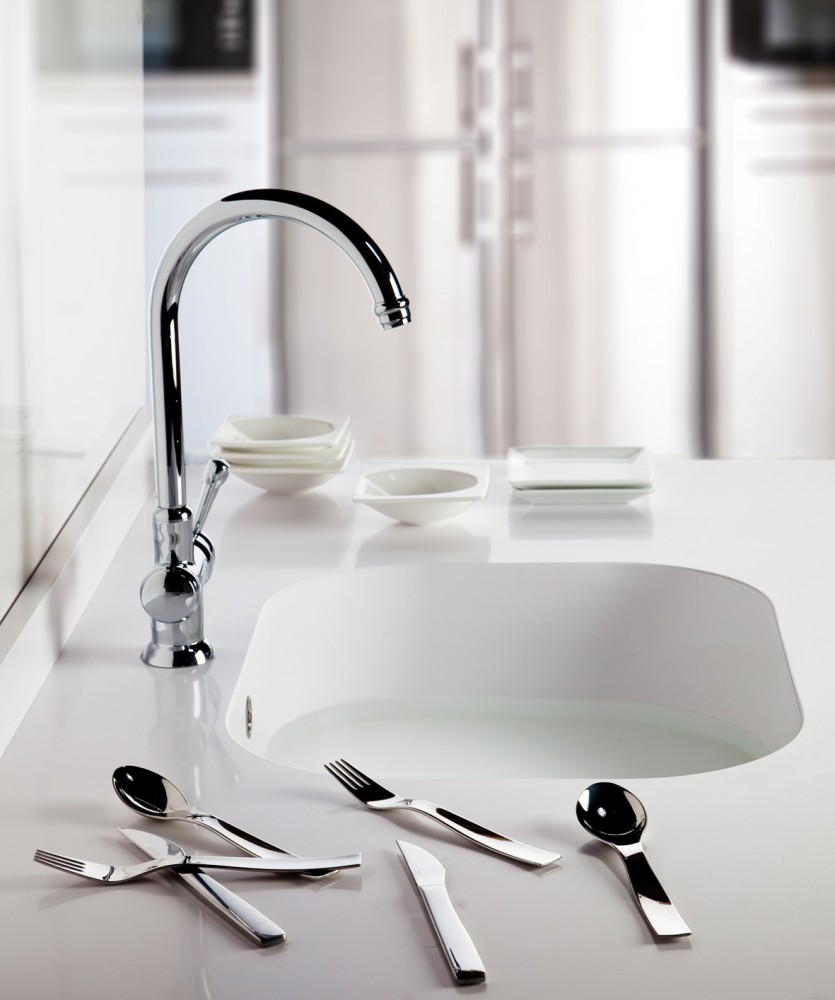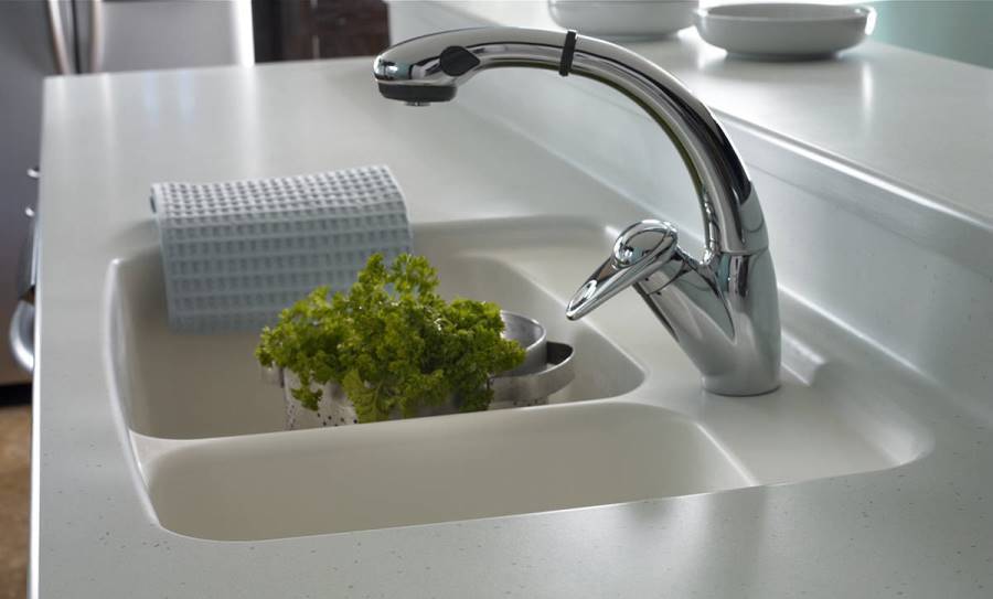 - Кориан. Имеет хорошие водоотталкивающие качества и устойчивость к загрязнениям. Изделия из кориана довольно легко чистятся и надолго сохраняют презентабельный вид.