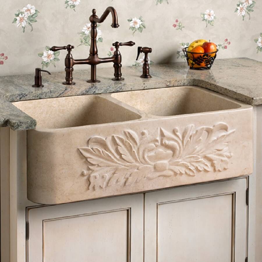 Наиболее гармонично каменная мойка будет смотреться в гарнитуре с фасадами из массива дерева или с имитацией дерева. Любителям стиля кантри она также придется по душе.