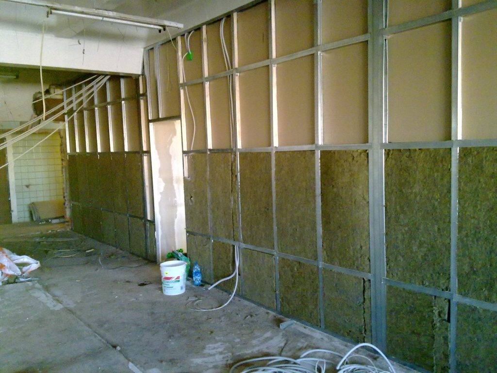 Для повышения тепло- и звукоизоляции, пространство между ГКЛ и стеной заполняют утеплителем. Использовать минераловатные материалы, в жилых помещениях, крайне нежелательно, из-за большой вероятности появления в воздухе микроскопических волокон.