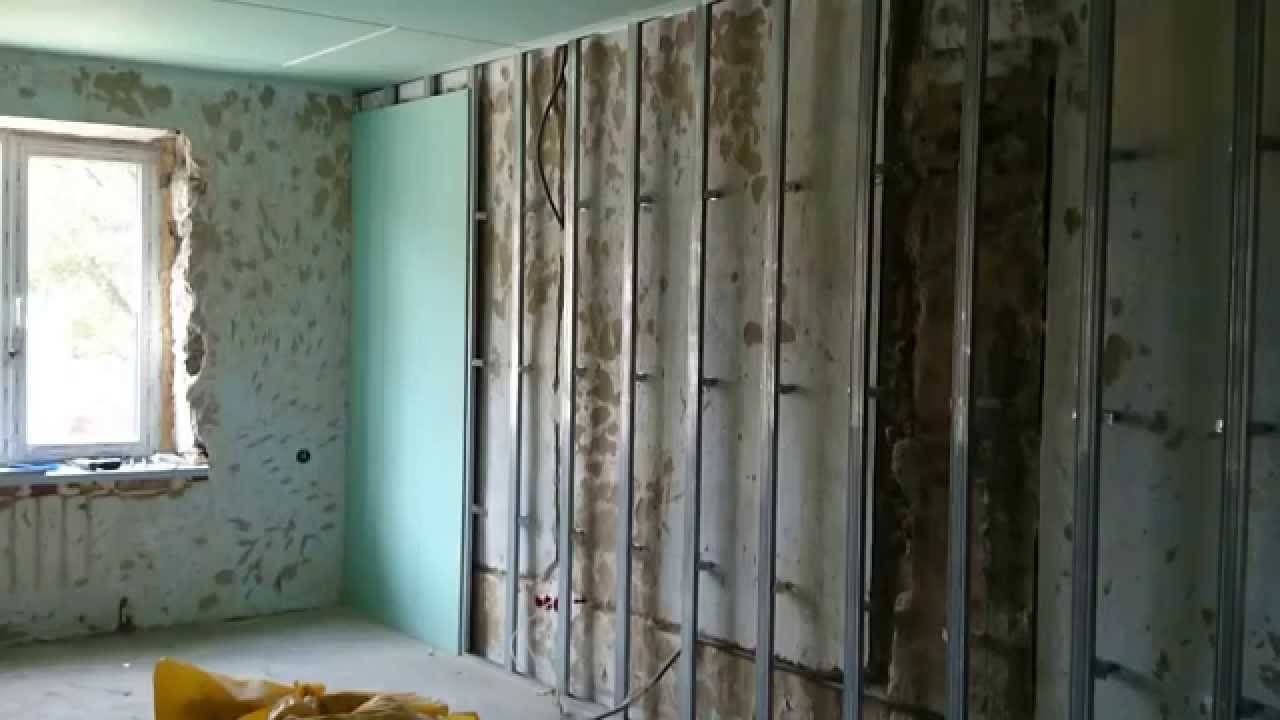 Вот так можно с помощью лазерного уровня определить глубину заваливания стены. Подробно показана сборка каркаса из металлопрофиля.
